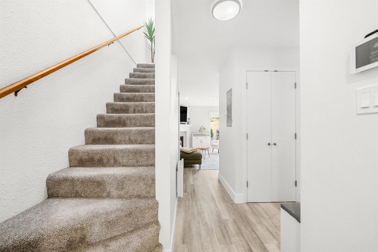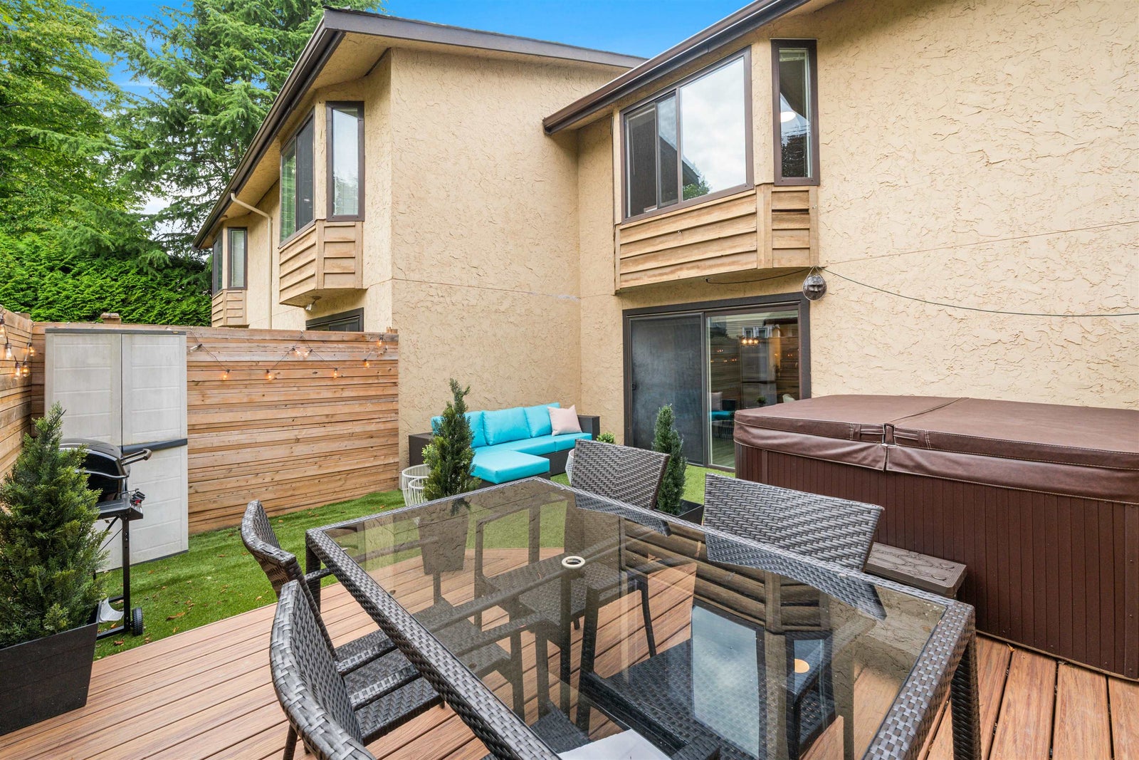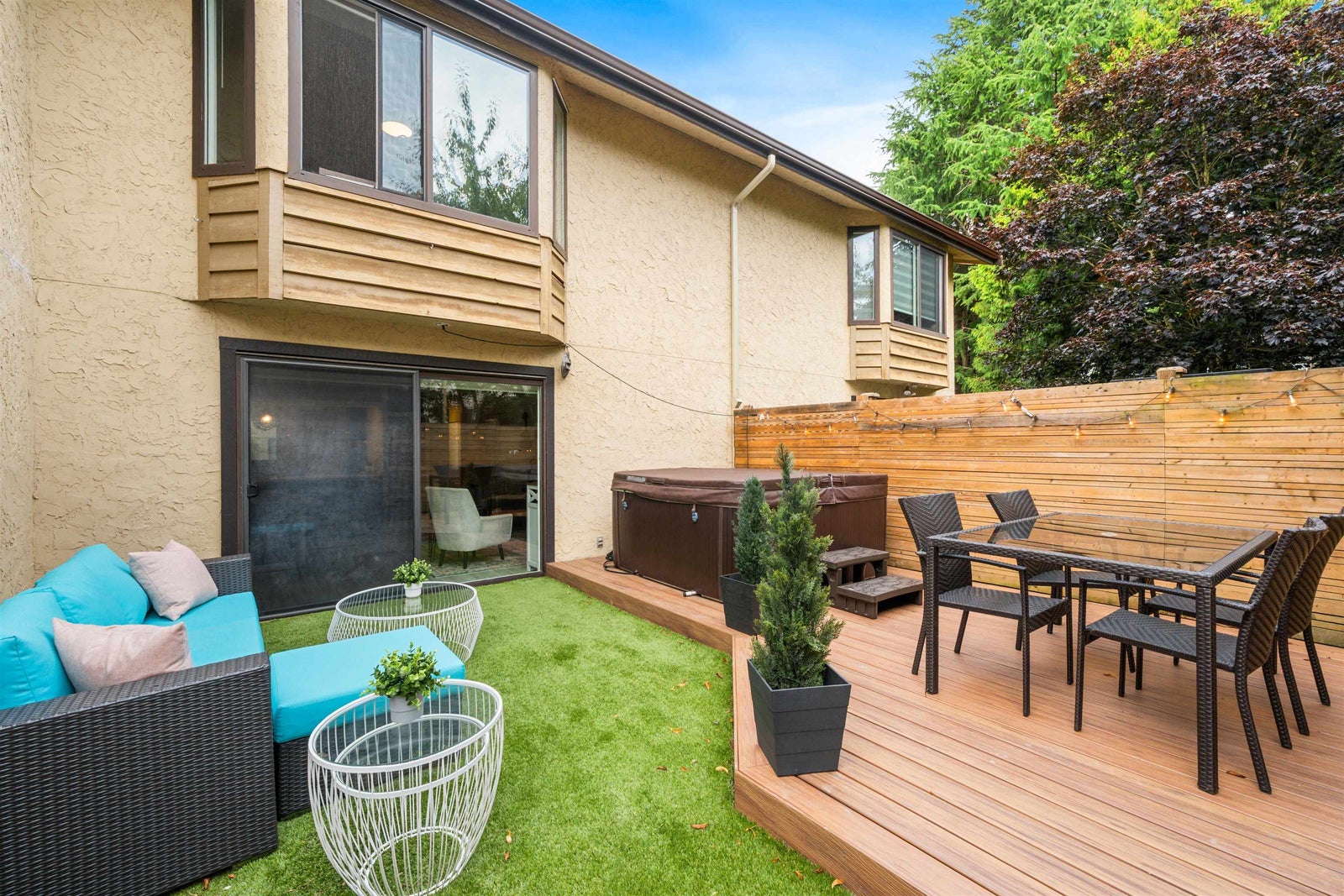 Welcome to Tiffany Estates! This charming 3-bed, 2-bath townhouse offers over 1,400 sq. ft. of comfortable living across two spacious floors. Enjoy the private hot tub in the sunny, south-facing private backyard with 370+ sq. ft. of outdoor space—perfect for entertaining or relaxing. Parking is conveniently located right outside your door, and a storage connected to the home. With its thoughtful layout and house-like feel, this home combines the best of townhouse living with the comfort of a detached property. Located in a top school catchment: Archibald Blair Elementary, Burnett Secondary. Close to parks, the Dyke, shopping, and more. Open House: Sat. Oct. 18 2-4pm, Sun. Oct. 19, 2-4pm