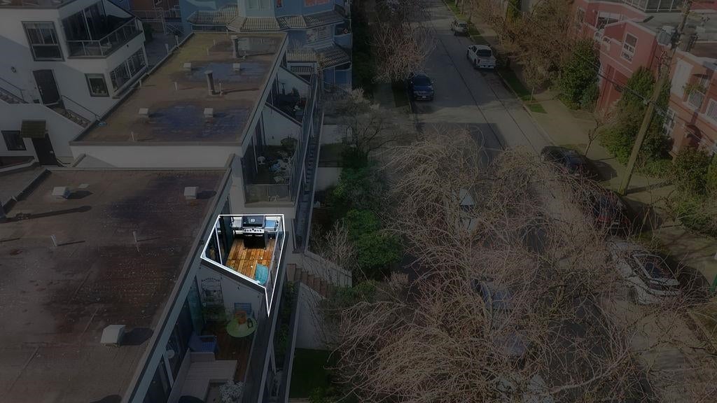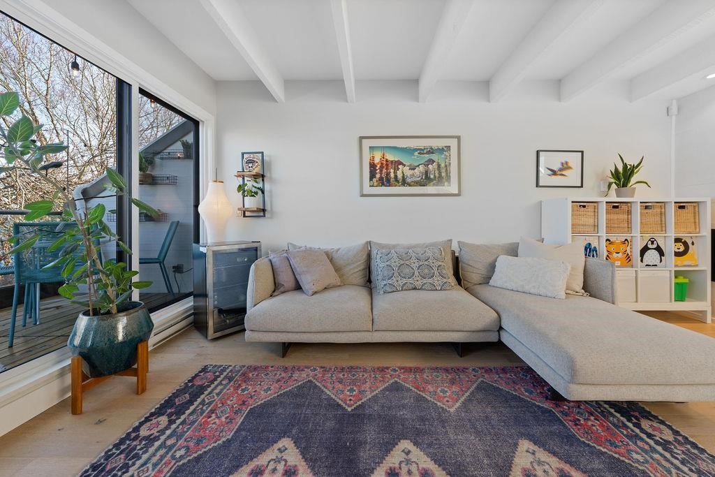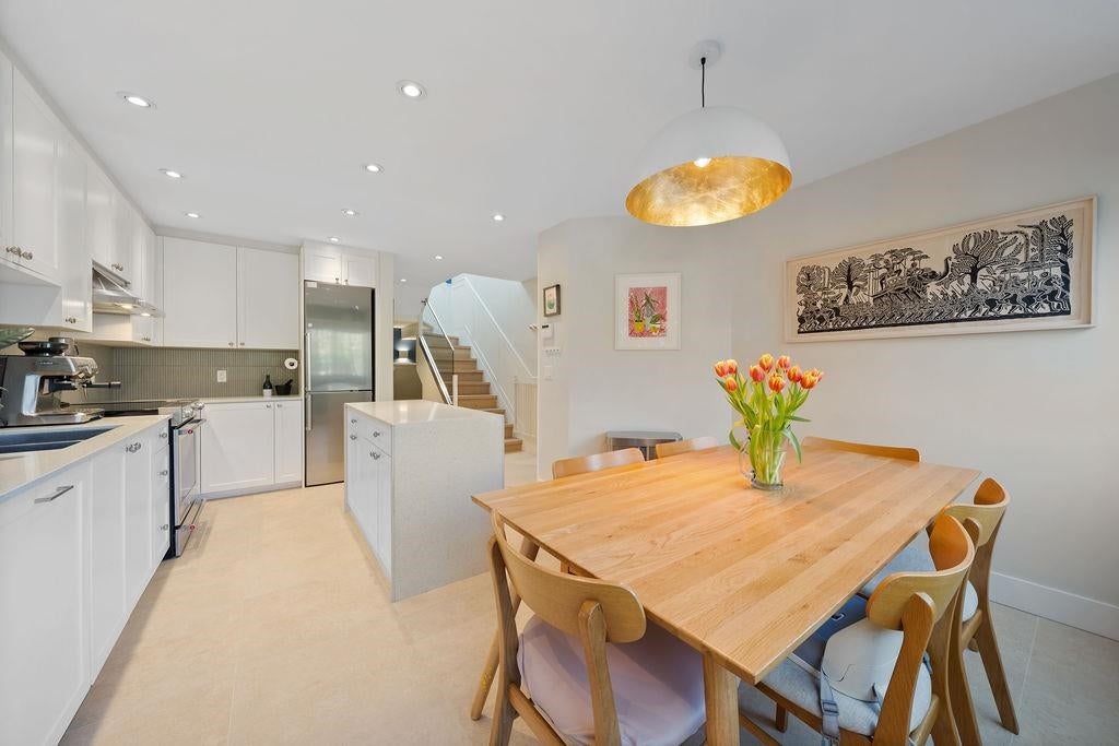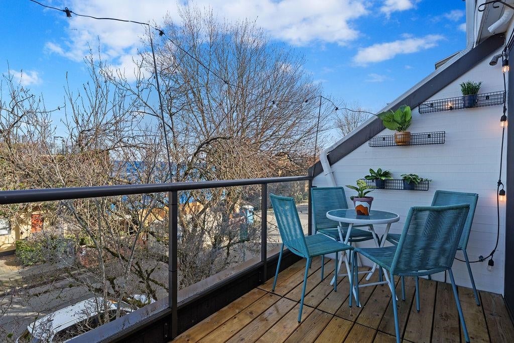 Beautifully renovated 1,181 sqft 2-bed, 3-storey home on a quiet, tree-lined bike street in the heart of Fairview. With over 200 sqft of outdoor space, enjoy stunning north-facing mountain views from your top-floor patio, plus a second private patio on the lower level — perfect for relaxing. Bright, open-concept living with a cozy electric fireplace and radiant in-floor heating on the main level. The spacious spa-inspired cheater ensuite offers a luxurious retreat. Boutique building just minutes to the new SkyTrain station, Granville Island, Laurel St. Landbridge, Charleson Dog Park, shopping, and vibrant Broadway amenities. Stylish, comfortable, and move-in ready — Fairview living at its best. 1 EV parking, 1 storage locker.